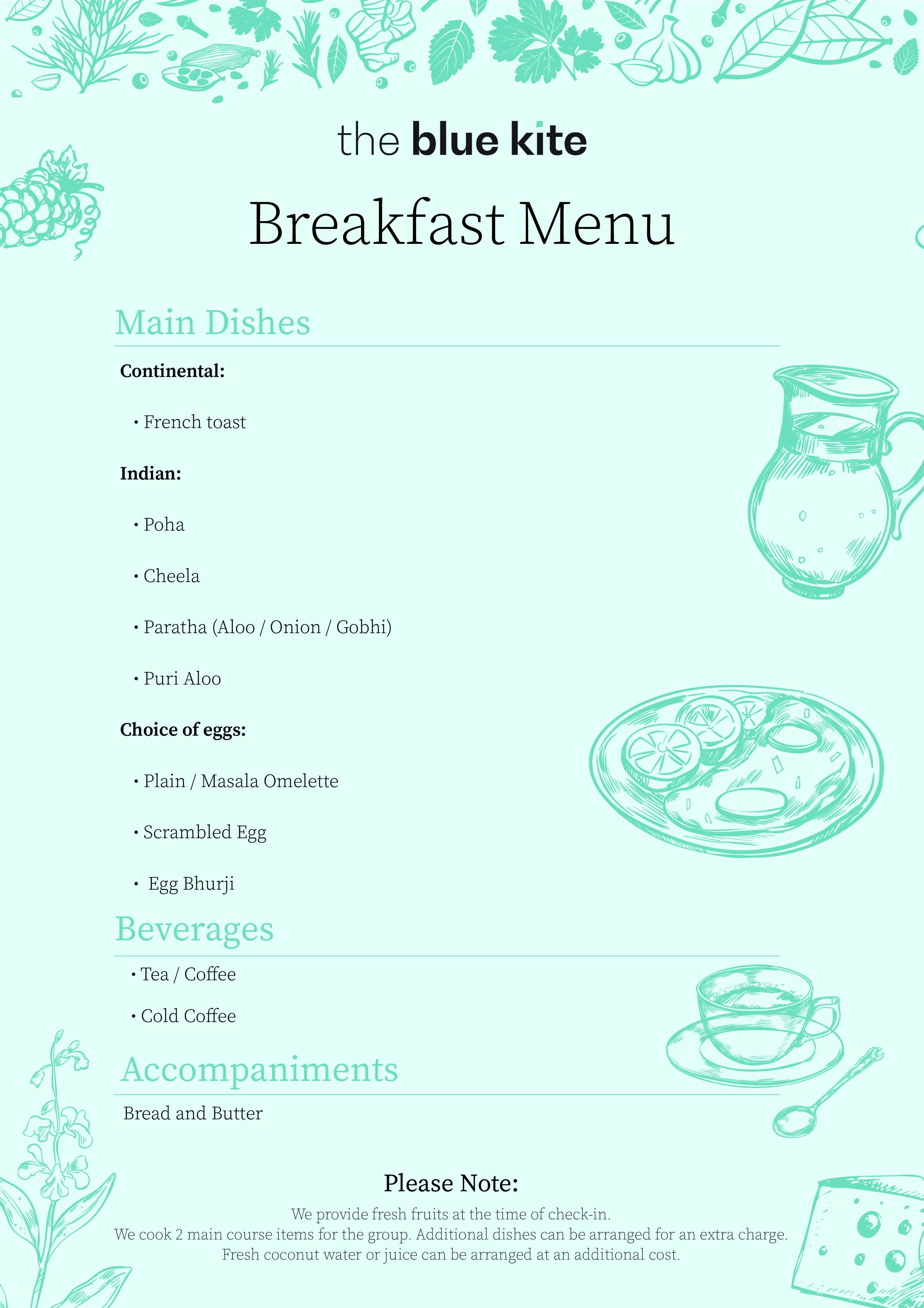 - Fully equipped with essential appliances, cookware, and utensils. Guests can cook independently or request the cook-on-call service for freshly prepared Indian, Chinese, or Continental meals.