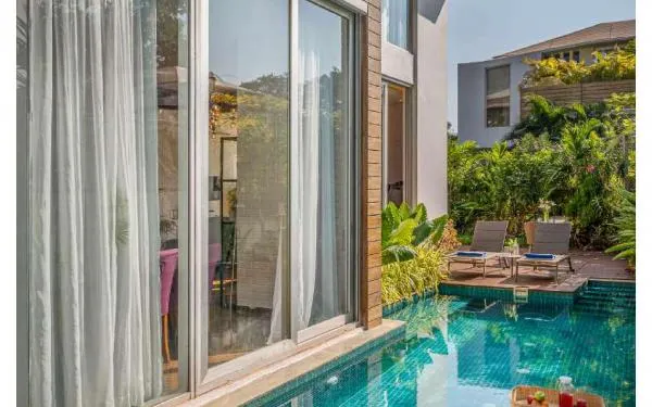 La Maroma 08 by The Blue Kite is a stylish 3-bedroom villa in Anjuna featuring ensuite bedrooms, a private pool, landscaped garden, and balconies with lush green views. With a fully equipped kitchen, high-speed Wi-Fi, full generator backup, private parking, and a dedicated caretaker, this villa is crafted for a tranquil coastal escape. A private chef can be arranged at an additional cost.