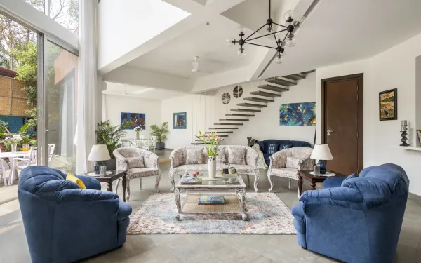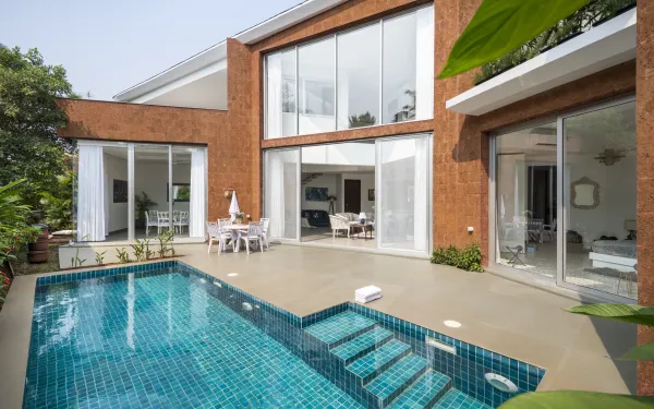 La Orilla 06 is a stylish 4-bedroom villa in Anjuna featuring four ensuite bedrooms, elegant living and dining spaces, a landscaped garden, and a private pool. With a fully equipped kitchen, high-speed Wi-Fi, power backup, safe parking, and 24/7 gated security, this villa is designed for a relaxed Goan getaway.